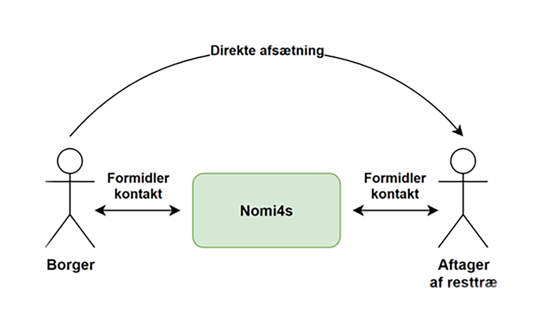 Da der netop ikke er to streger under facit i denne case, så fortæller Jesper Riddersholm, at de har identificeret en række udfordringer ved at modtage resttræ direkte fra genbrugspladsen som producent eller virksomhed. Derfor forslår de, at Nomi4s kan agere mellemled inden træet kommer helt ud på genbrugspladsen. Det er en rolle, hvor Nomi4s kontakter potentielle modtagere af træet efter henvendelse fra borgere, der har resttræ i overskud. Jesper Riddersholm nævner, at træet ofte er ødelagt og har affaldstitlen på sig, når det lander på genbrugspladsen. Derfor skal historien bag træet fremhæves, da det ofte er den gode historie, som sælges videre i forbindelse med upcycling af træet. Det kræver en lang række andre dokumentationer og der er flere faktorer, der gør denne løsning kompleks. Løsningen kræver dermed yderligere undersøgelser.
