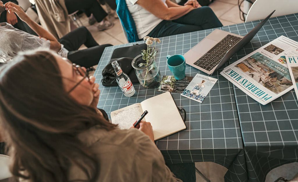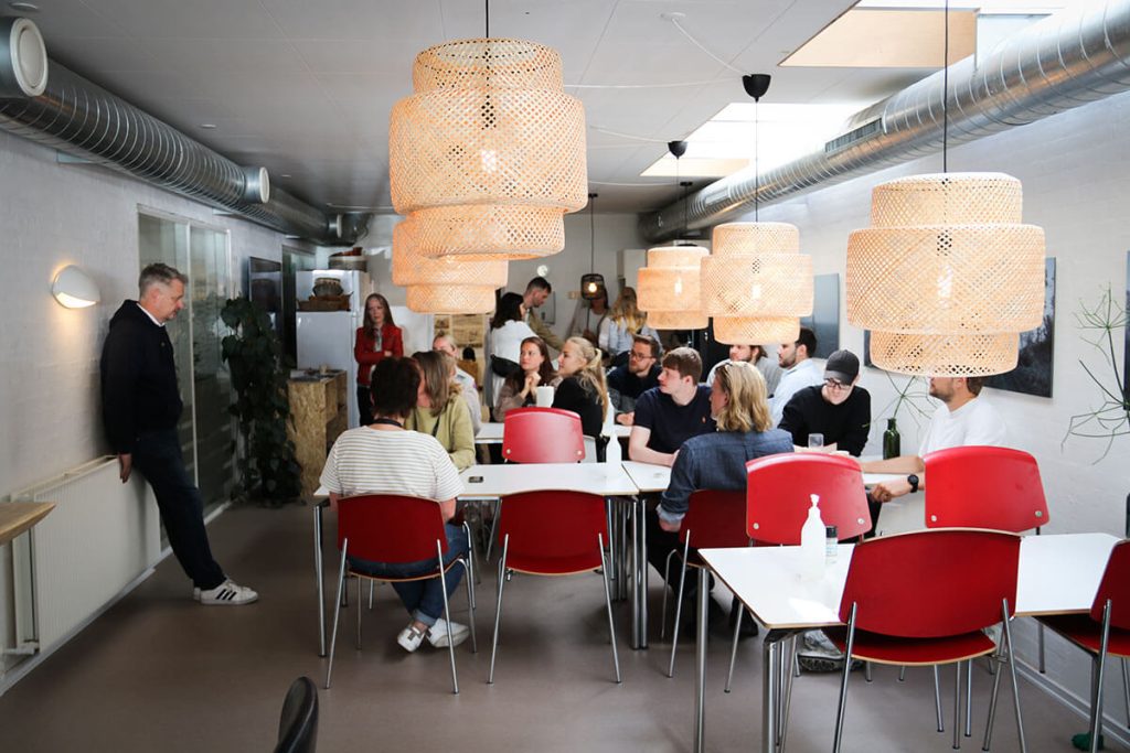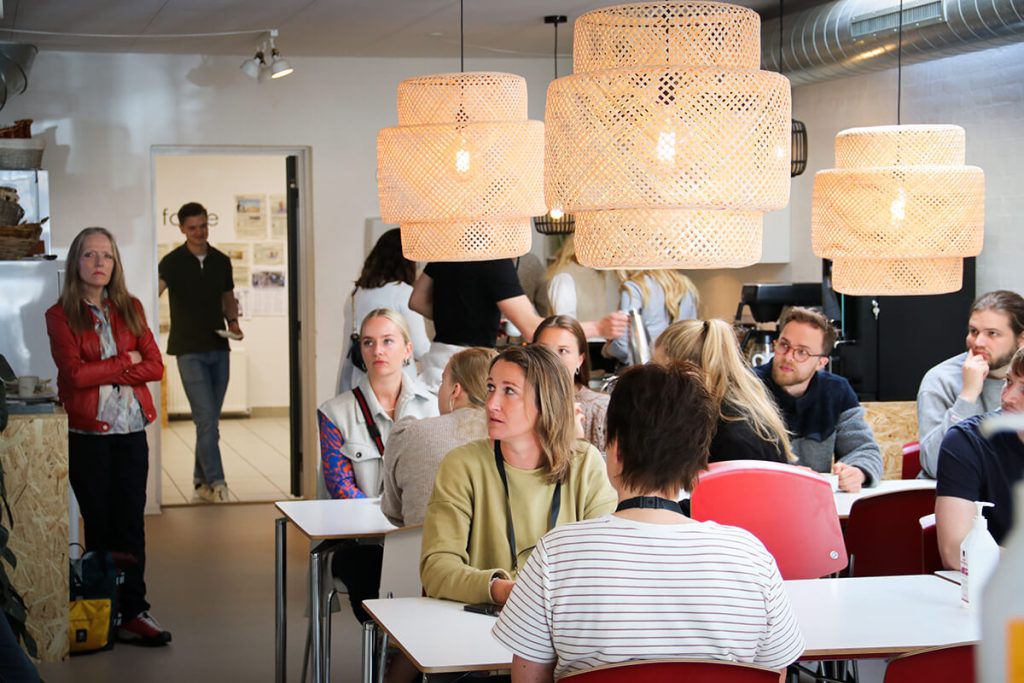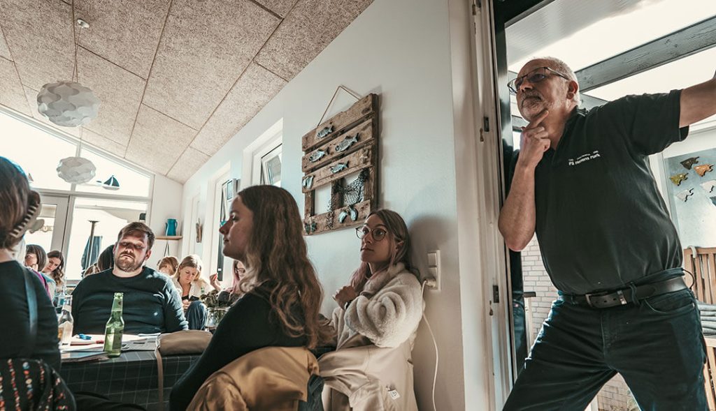 På caféen ”På Herrens Mark” blev de 36 kandidatstuderende introduceret til idéen om den grønne innovation, som den tidligere Furbo og repræsentant af Green Innovation Makers, Stefan Tholstrup Schmidt, holdt et oplæg om. Derefter var det selve caféens vært, Jørgen, som fortalte til studerende om øens erhvervsliv. Hovedbudskabet i hans oplæg var, at virksomhederne ”på sådan en bitte ø” skal gøre alt for at skabe den bedste oplevelse for gæsterne – også hvis det kræver at åbne restauranten på en mørk vinteraften, når alt er lukket og slukket fordi det er lavsæson.