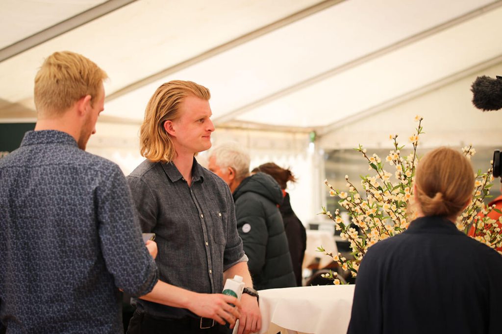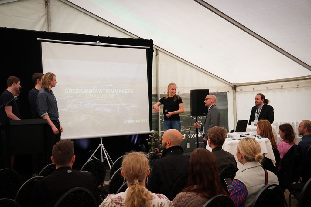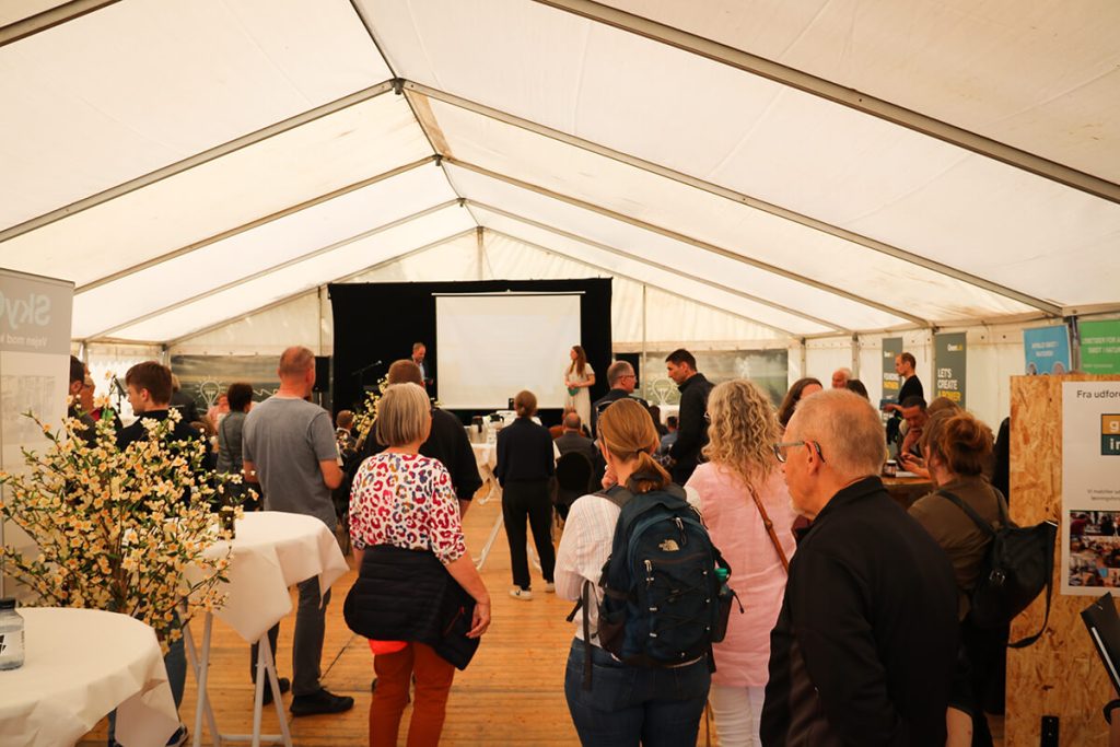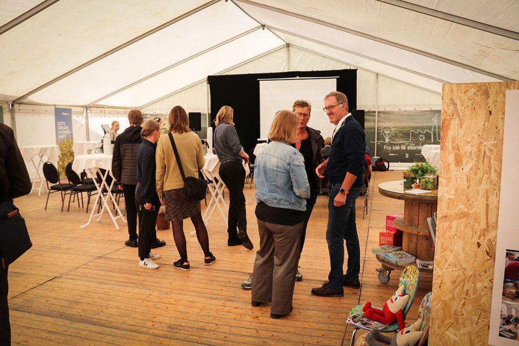 De sidste grupper pitchede i GreenLab-teltet på Skivemødet for Ebbe Kruse Vestergaard, Research Director fra GreenLab Skive og erhvervskonsulent Christopher Gade fra Business Skive samt for publikum i teltet.