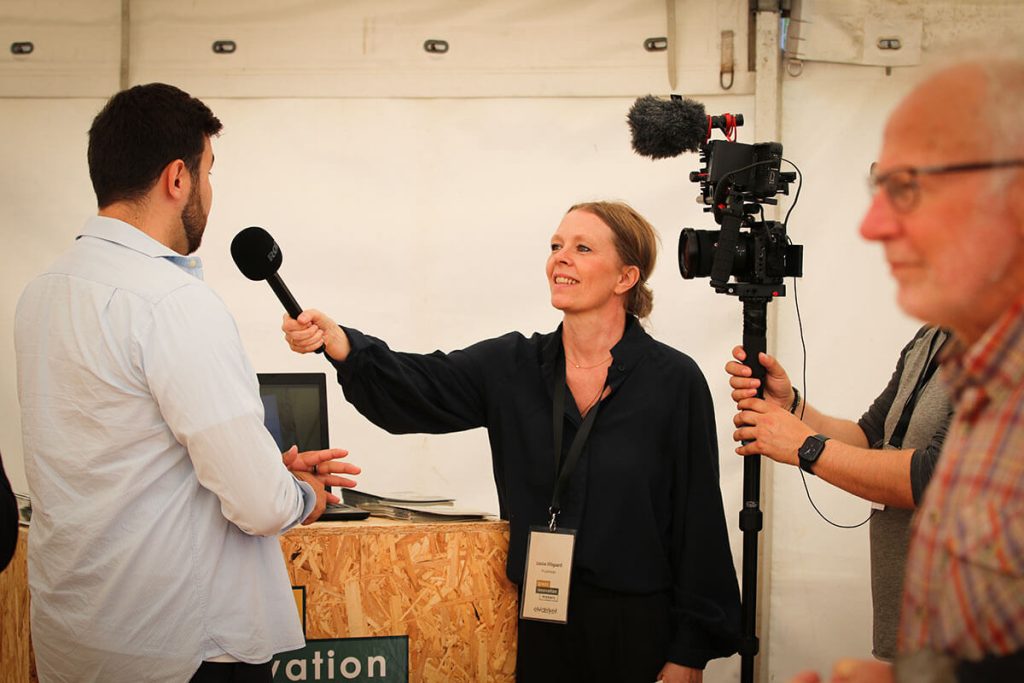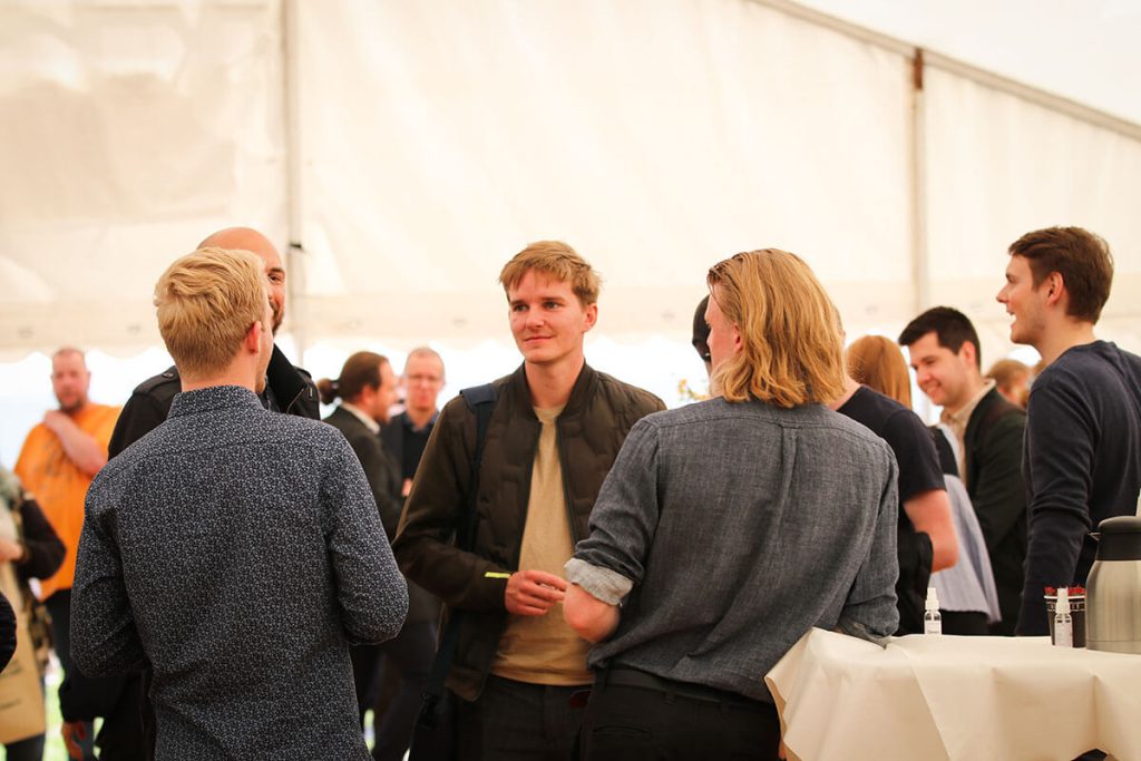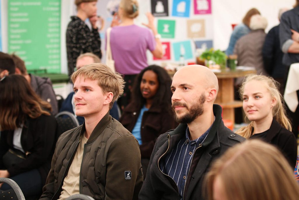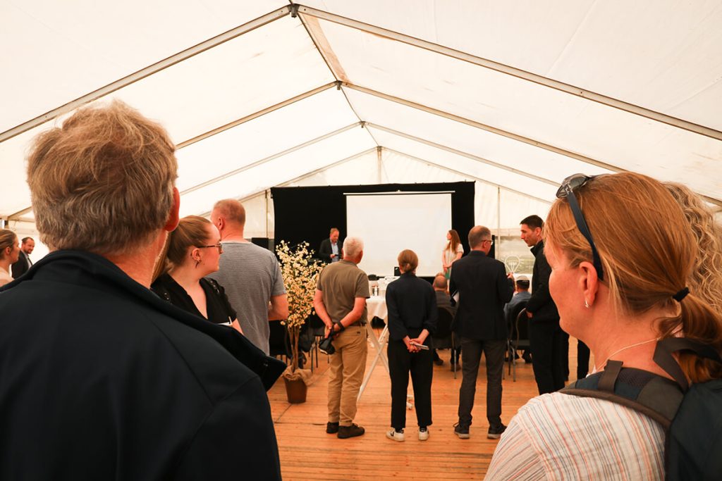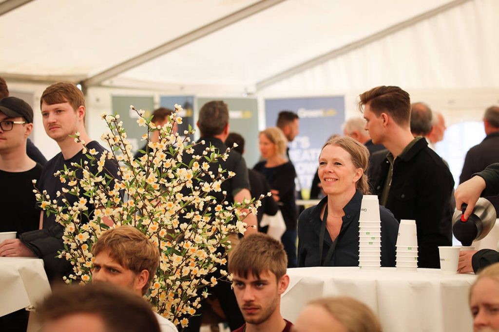De sidste grupper pitchede i GreenLab-teltet på Skivemødet for Ebbe Kruse Vestergaard, Research Director fra GreenLab Skive og erhvervskonsulent Christopher Gade fra Business Skive samt for publikum i teltet.
