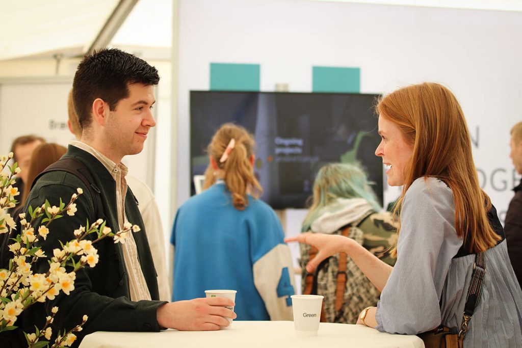 I Det Grønne Telt skal du ikke blot se på. Vi har nemlig en grøn samtalestarter, hvor du kan vælge mellem forskellige finurlige spørgsmål om grønne teknologier mv., som du kan få svar på inde i teltet. Det kan f.eks. være du gerne vil vide, hvordan pulveriserede søstjerner kan bidrage til den grønne omstilling? Og om halm virkelig kan lagre CO2 i mere end 500 år?