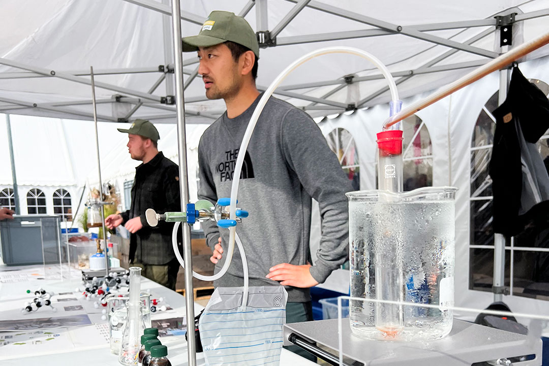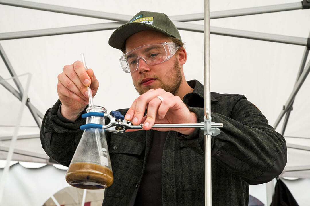 -Jeg repræsenterede virksomheden Quantafuel, og viste på min stand en nedskaleret og simpel version af plastpyrolyseprocessen, hvor plastaffald ender med at blive ny råolie, som igen kan anvendes i plastindustrien. Nogle af de teknologier vi har fortalt om og fremvist, er helt nye og hidtil usete for størstedelen af befolkningen. Det er derfor et privilegie at blive inviteret med til sådan et projekt, hvor vi via vores metoder som lærerstuderende, får lov at dykke ned i at videreformidle disse teknologier. Forhåbentlig sætter det tanker i gang omkring grøn omstilling hos deltagerne, store som små, at få en konkret og visuel præsentation af disse teknologier.