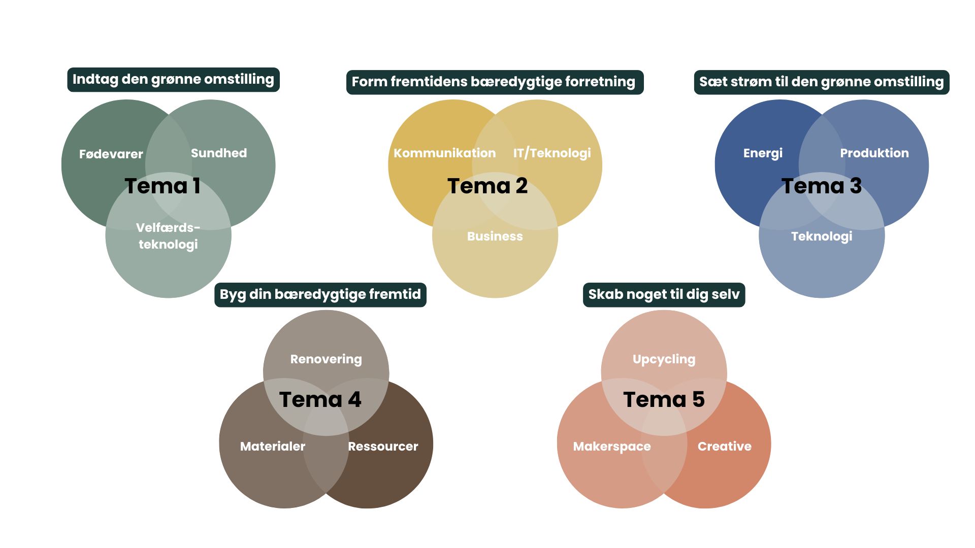 Vi opfordrer dig til at besøge Green Innovation Week og opleve årets fem temaområder i fuld aktion mellem kl. 9.00-14.30 med +4.000 deltagere fra hele landet. Find temaområderne længere nede.